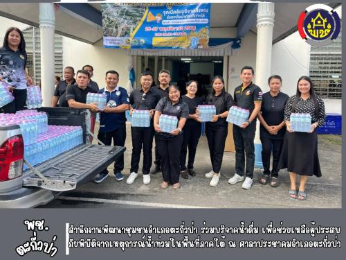 นายจตุพร บุญศิลป์ พัฒนาการอำเภอตะกั่วป่า พร้อมด้วยเจ้าหน้าที่สำนักงานพัฒนาชุมชนอำเภอตะกั่วป่าได้ส่งมอบน้ำดื่ม จำนวน 45 แพ็ค ให้แก่ชมรมกำนัน ผู้ใหญ่บ้าน อำเภอตะกั่วป่า เพื่อนำไปช่วยเหลือผู้ประสบภัยพิบัติจากเหตุการณ์น้ำท่วมที่เกิดขึ้นในพื้นที่ภาคใต้